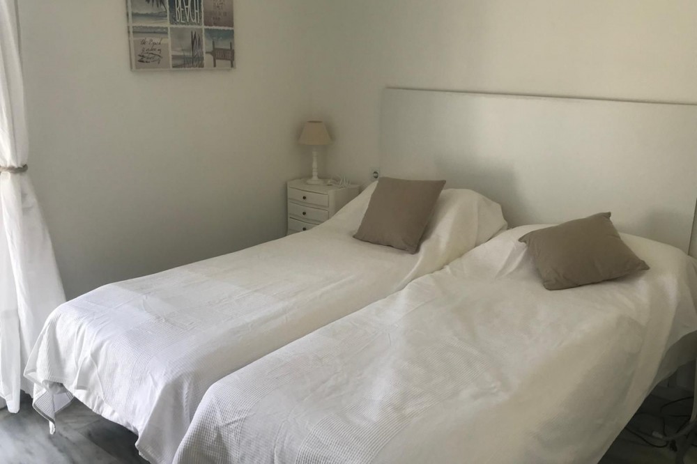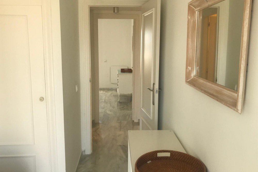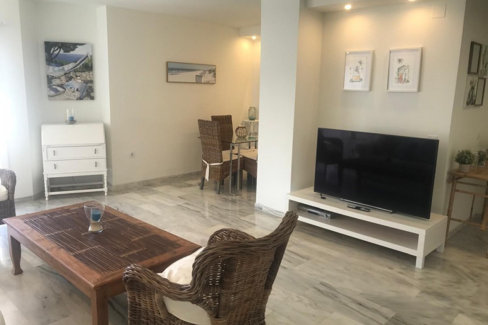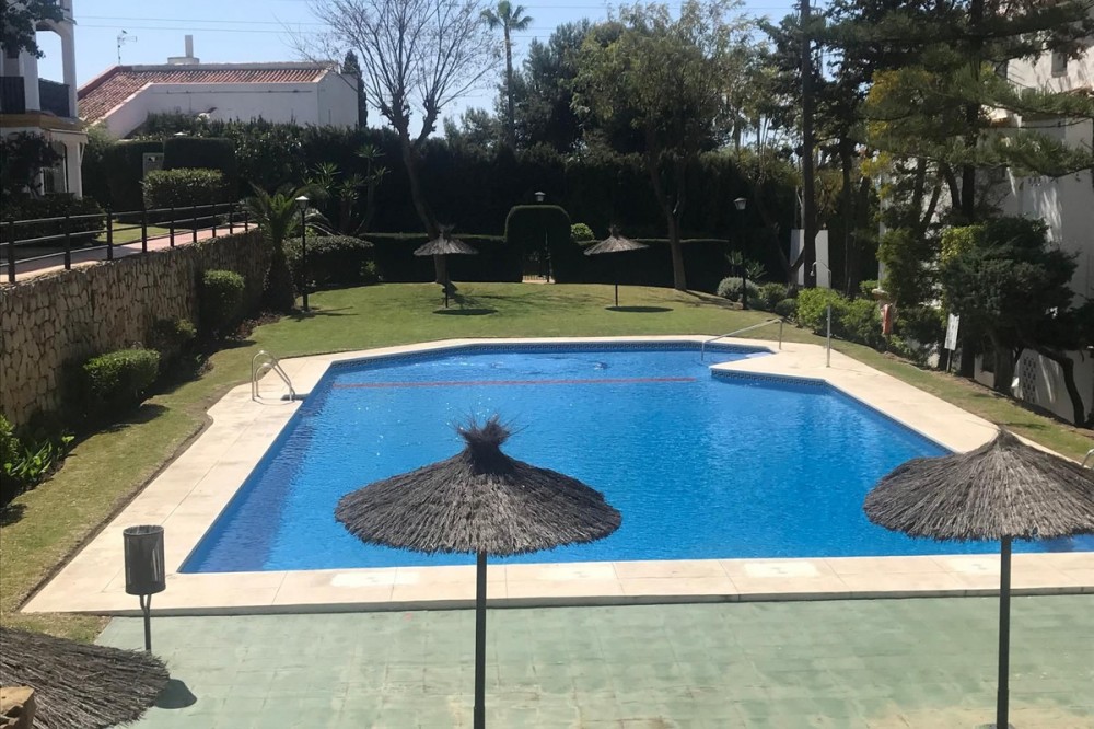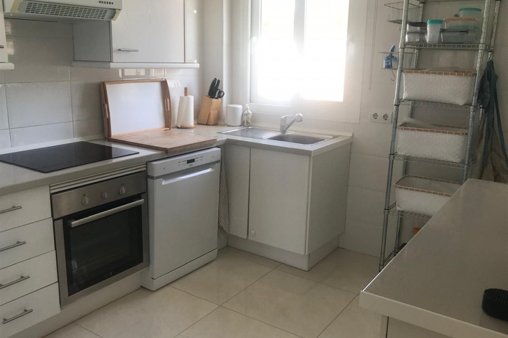 - Discover this charming penthouse situated in a quiet residential area of the New Golden Mile in Estepona, where comfort and stunning views come together to offer you a unique home. The property features two spacious double bedrooms, both with fitted wardrobes, and two full bathrooms, one fitted with a bath and the other with a shower. The kitchen and the bright living-dining room form a cosy open-plan space leading out to a lovely terrace on the same level, overlooking the residential complex. The real gem of this penthouse is its spectacular upper terrace: a spacious and versatile area with views of the sea and the green spaces surrounding the property. Perfect for creating a chill-out atmosphere, enjoying al fresco dining or relaxing on the sun loungers in the sun. There is also a handy storage room on this floor. The property includes a parking space in the communal garage and access to a large swimming pool surrounded by well-tended gardens, offering an ideal setting for rest and relaxation. A cosy, discreet and charming home in a prime location.