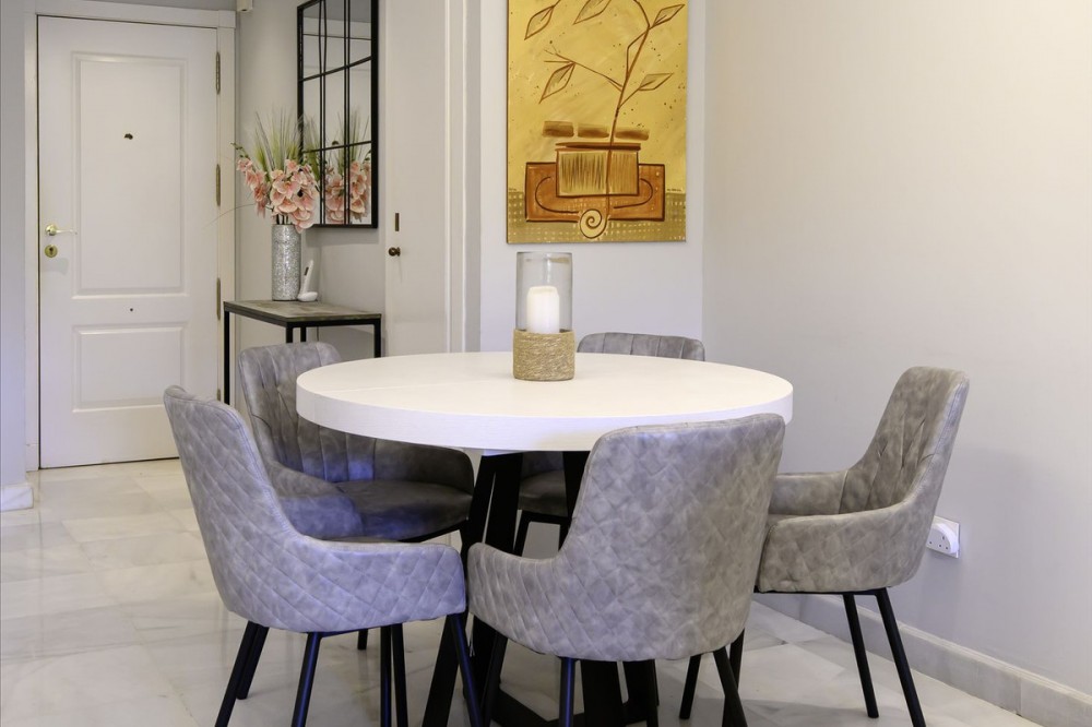 - This is a fantastic 3-bedroom, 2.5-bathroom ground floor apartment located in Hacienda del Sol, one of the most sought-after beachside urbanisations on the Costa del Sol. The community offers excellent facilities including five swimming pools, an indoor gym, sauna, padel courts, and 24-hour gated security, along with underground parking and a private storage room. The property itself was originally built in 2005 and renovated three years ago, now presented in very good condition with quality fixtures and fittings throughout, being sold fully furnished. One of the standout features is the layout. Upon entering, there is a guest toilet, which is not commonly found in this urbanisation. The fully renovated kitchen found to your right as you enter is modern and well-equipped, with access to a large rear terrace and separate utility area. The main living space is bright and spacious, combining a dining and lounge area with modern finishes and integrated lighting. This leads out to a large south-facing terrace, perfect for outdoor dining and relaxation. From here, you step directly onto a very private communal garden area that feels almost like your own, and is conveniently located close to one of the 5 pools. In addition, the property benefits from a second, north-facing terrace, providing further outdoor space and flexibility. There are three well-proportioned bedrooms. The master bedroom includes an en-suite bathroom and walk-in wardrobe, while the second and third bedrooms both have built-in cupboards and share a spacious family bathroom with bath and shower. The apartment is filled with natural light throughout and offers a comfortable and practical layout, making it ideal as a holiday home or rental investment. The location is excellent, just 150 metres from the beach, with a selection of beach bars, restaurants, and shops within easy walking distance. A great opportunity in a well-established and highly regarded community.